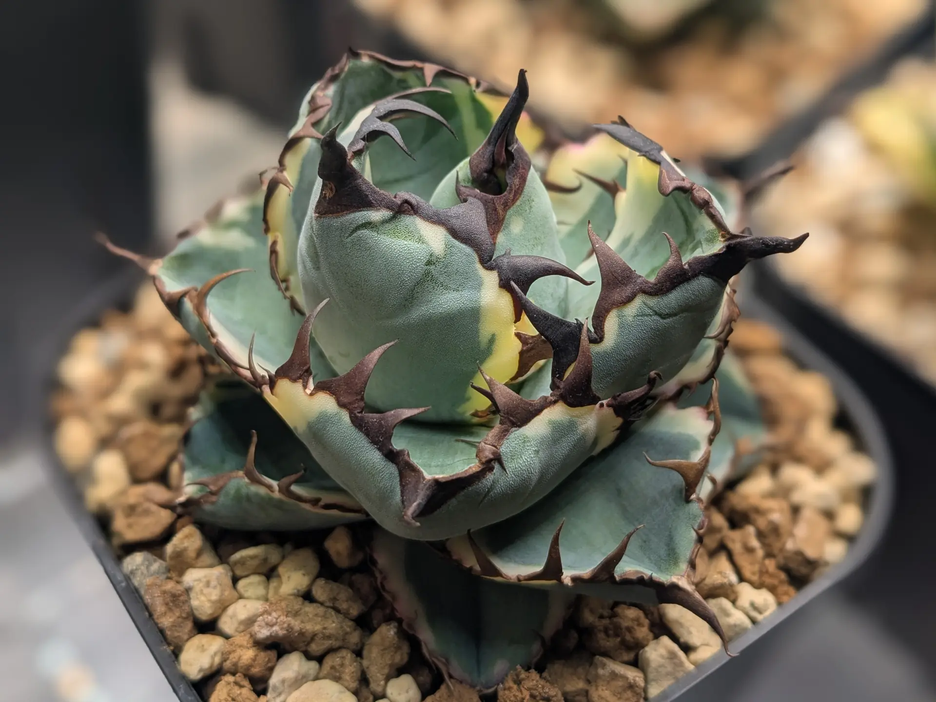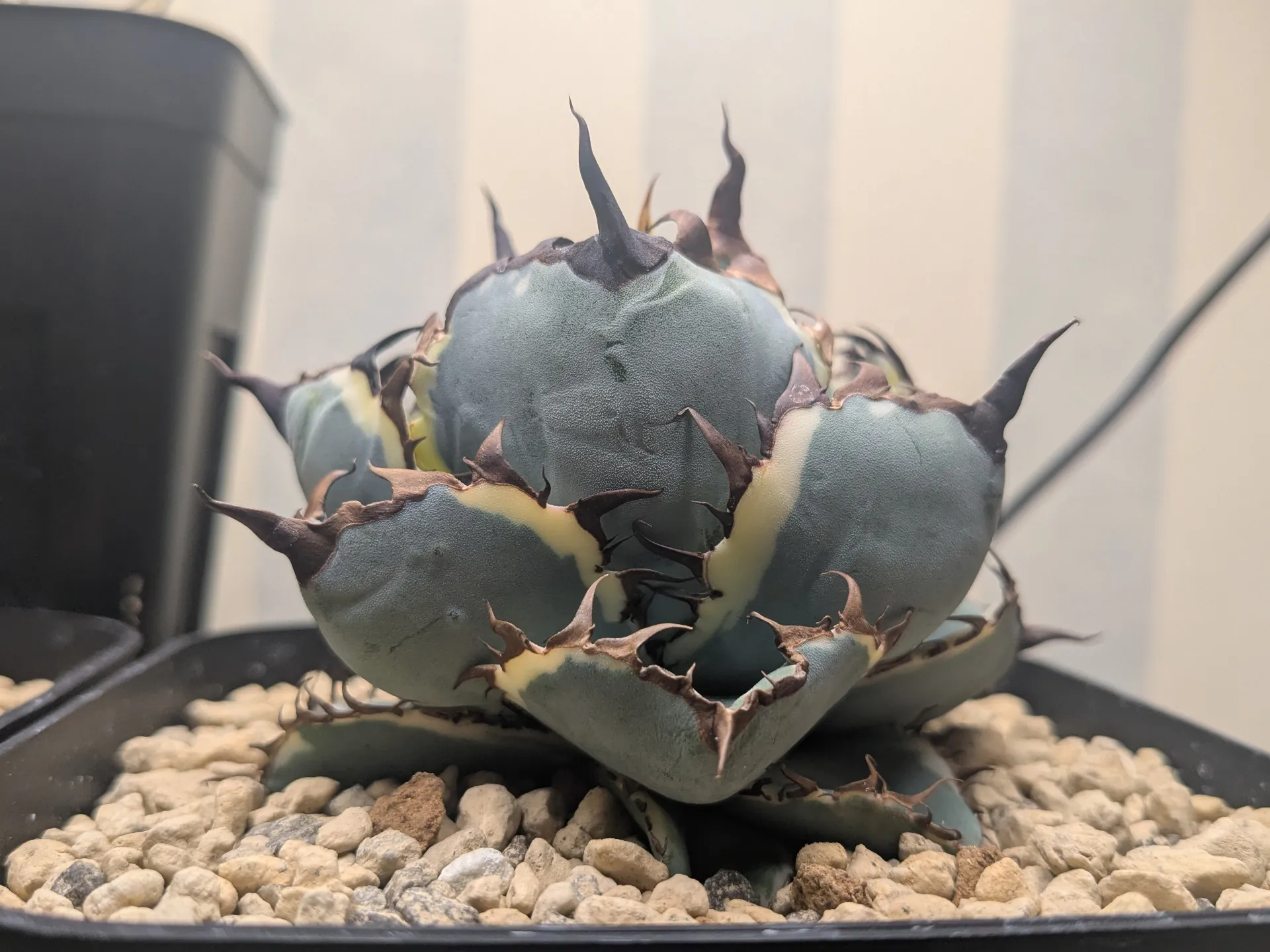 BB錦の成長日記 #1入手〜6ヶ月#アガベ#チタノタ2025/4/16BB錦の成長日記です🌱目次入手時 2ヶ月後 4ヶ月後 6ヶ月後 入手時 プレステラ105に植えた。 2ヶ月後 葉の展開は、月1枚ほど。 4ヶ月後 根っこがはみ出てきたので、プレステラ150へ植え替え。 6ヶ月後 丸くまとまってきた。 まだまだ成長中。 〜つづく〜← 前の記事アガベの発根管理(1)次の記事 →セントポーリアの成長日記 #1